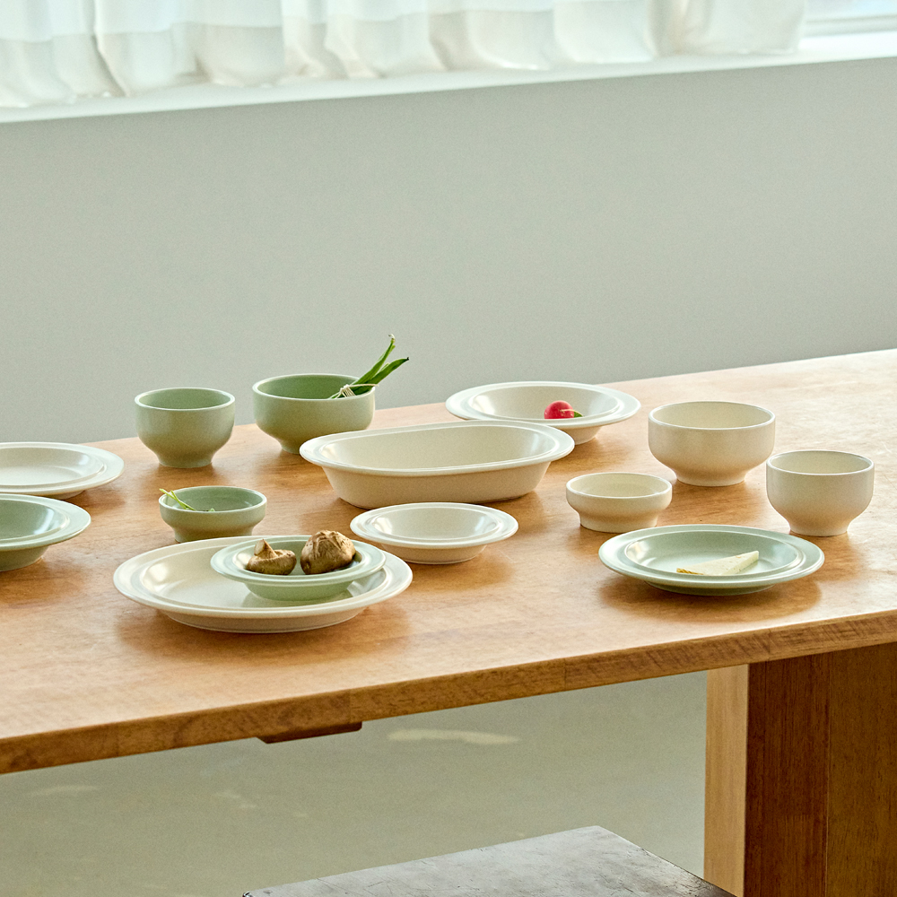 OPTION선택하세요.4. Clam White & Emerald Green[Oval Bowl(Green)/Large Plate(White)]